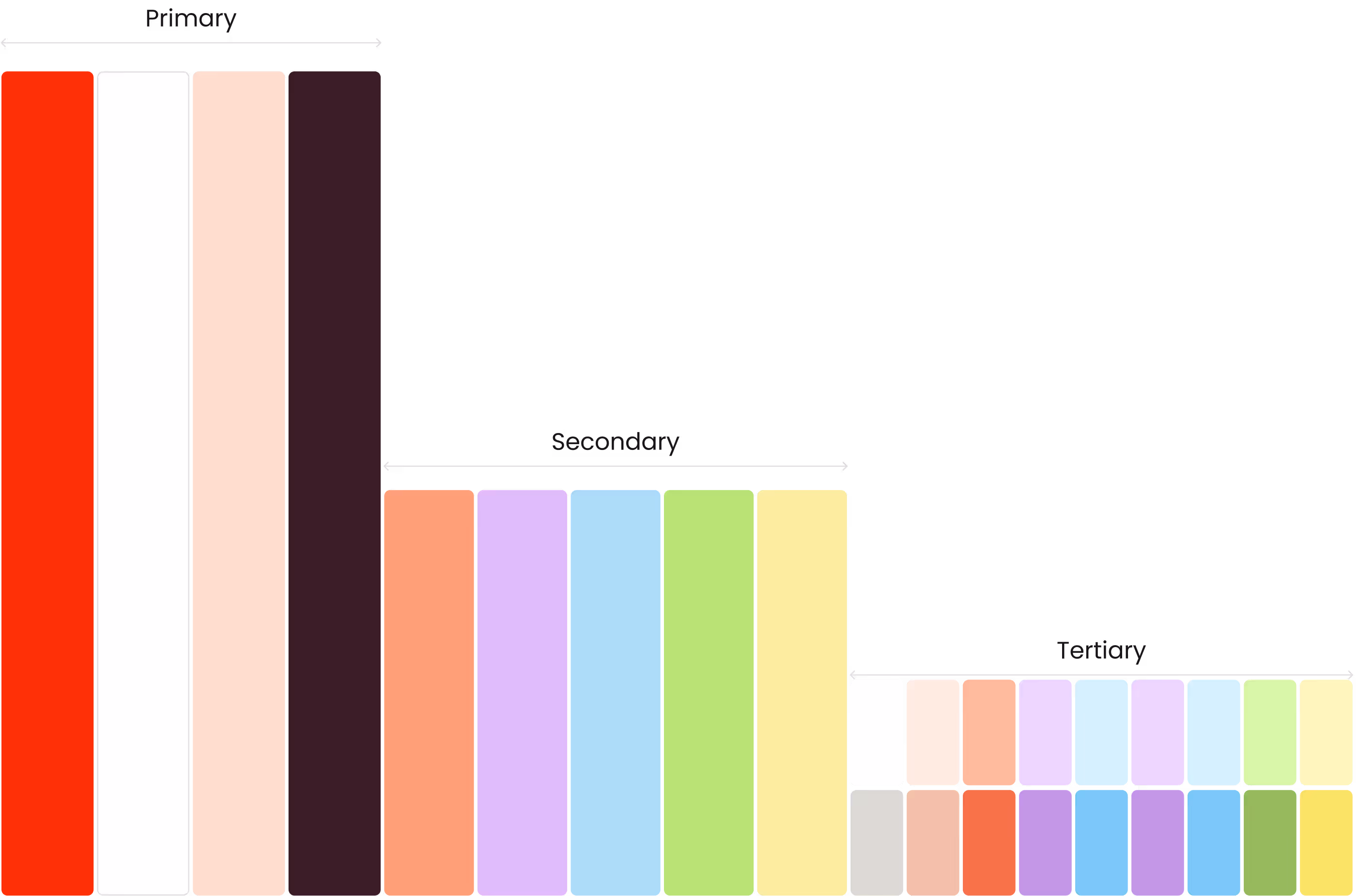 Our tertiary palette adds depth and flexibility, offering a refined range of shades that complement the primary and secondary colours. These additional shades provide more options when needed, but should be used sparingly to keep the overall look clean and cohesive.