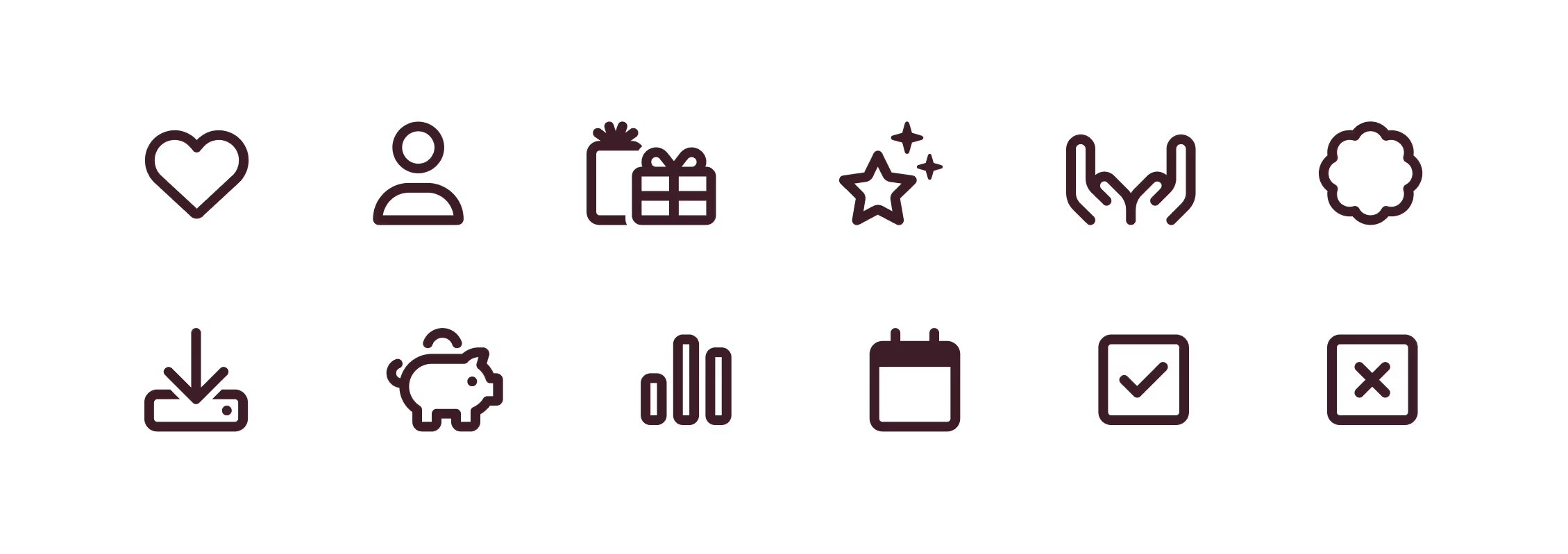 These icons are best suited for non-functional, ‘moment’ touchpoints within the product, such as end-of-journey screens.